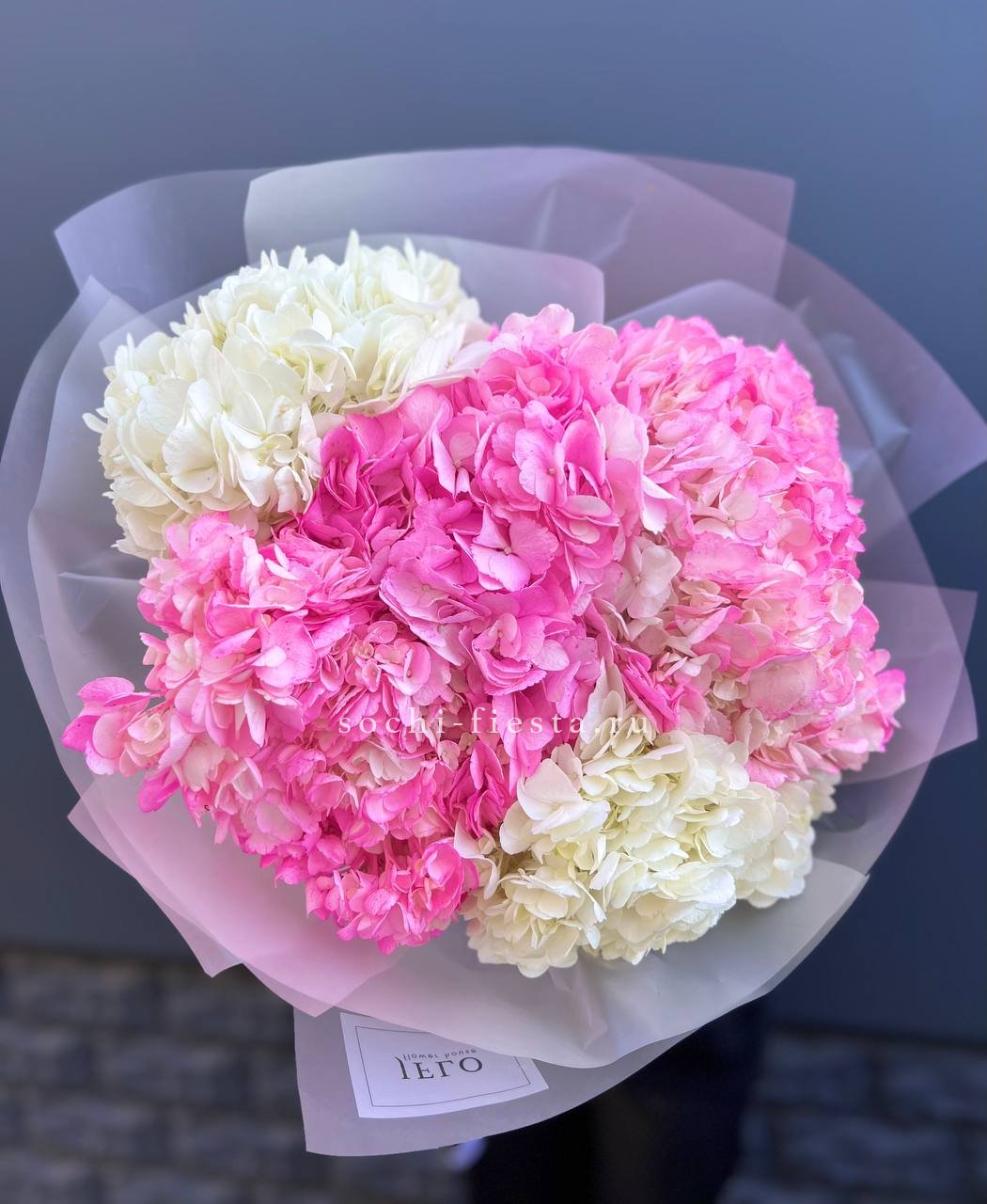 гортензия - 7 шт., лента, дизайнерская упаковка.