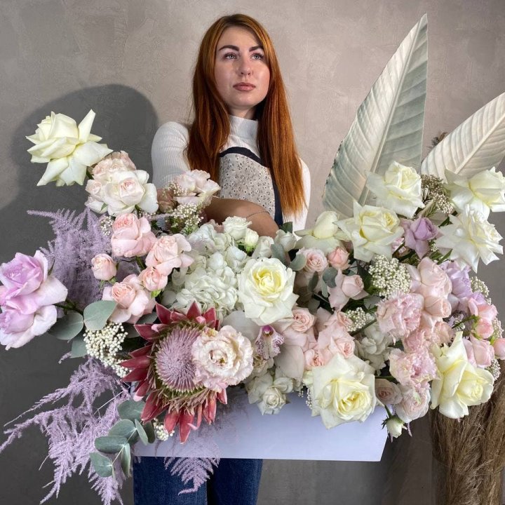 Авторские букеты гиганты в Улан-Удэ — формат для тех событий в жизни города, когда обычного букета недостаточно. Юбилей 50 лет, свадьба, открытие бизнеса, значимое корпоративное поздравление — именно к таким поводам клиент заказывает гигантский авторский букет, который невозможно не заметить. Флорист в Улан-Удэ создаёт авторские букеты гиганты из 101 и более роз, пионовые гиганты в сезоне, корзины-гиганты для торжественных вручений. Именно масштаб флористического жеста делает момент незабываемым для получателя и всех присутствующих.