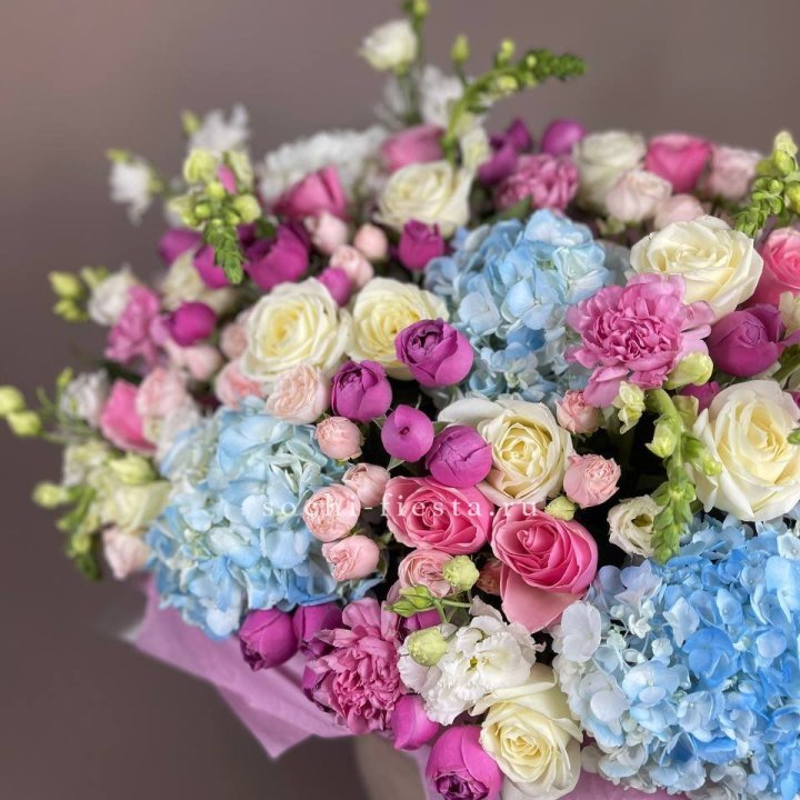 - Пионовый гигант — букет из 60-80 крупных пионов для майского-июньского сезона.
