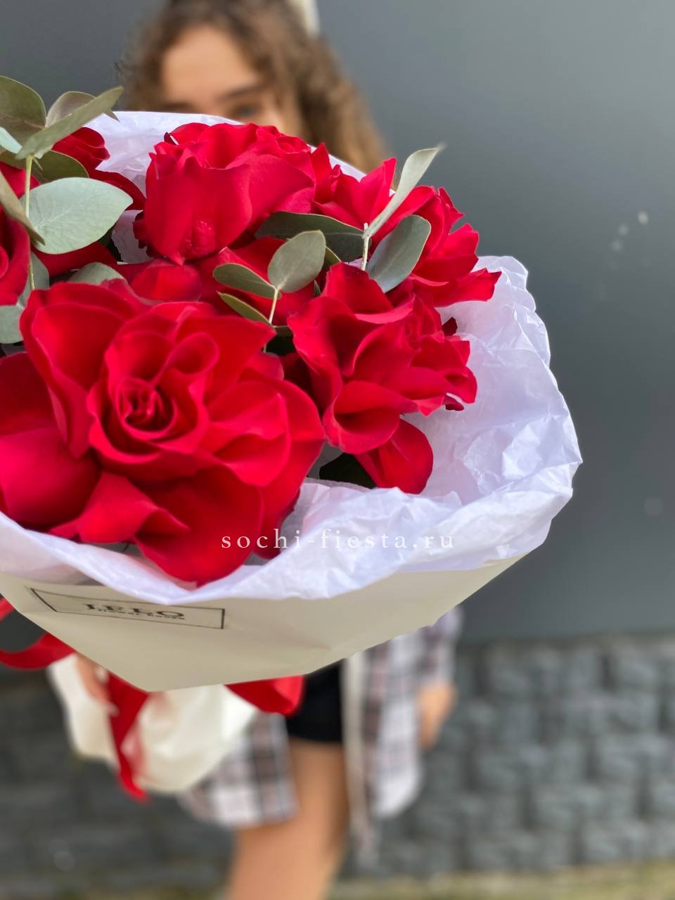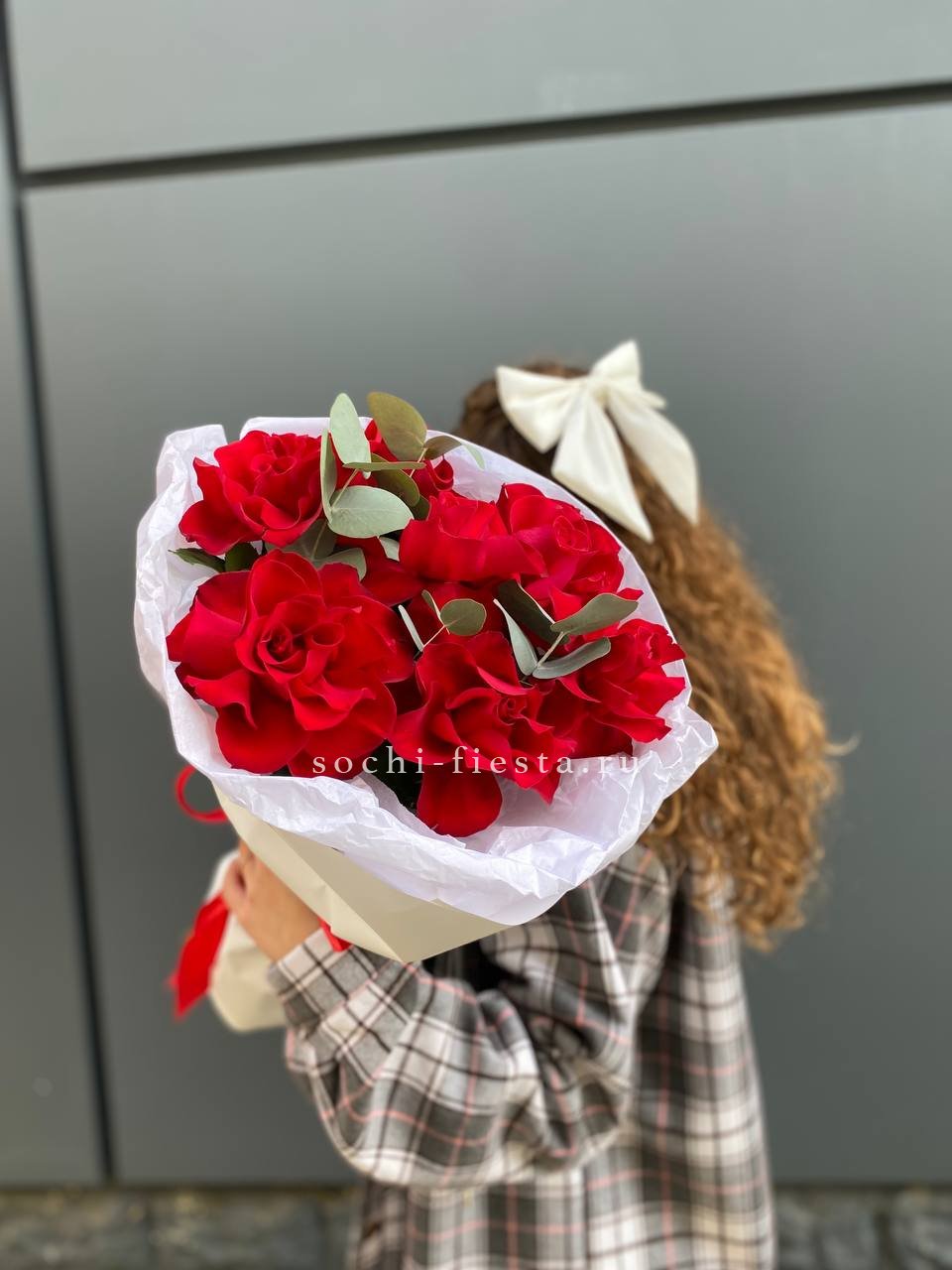 вывернутые розы - 11 шт., эвкалипт - 1шт., лента, авторская упаковка.
