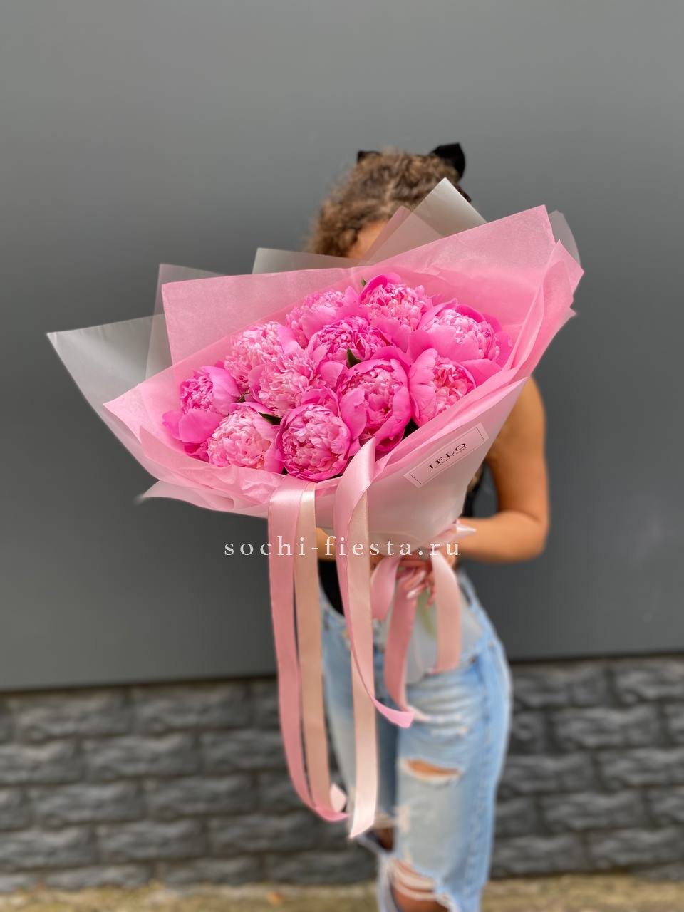 Пионы в воздушной упаковке из тишью создают впечатление лёгкости и движения. Полупрозрачная плёнка мягко обволакивает бутоны, сохраняя их естественную красоту и свежесть.