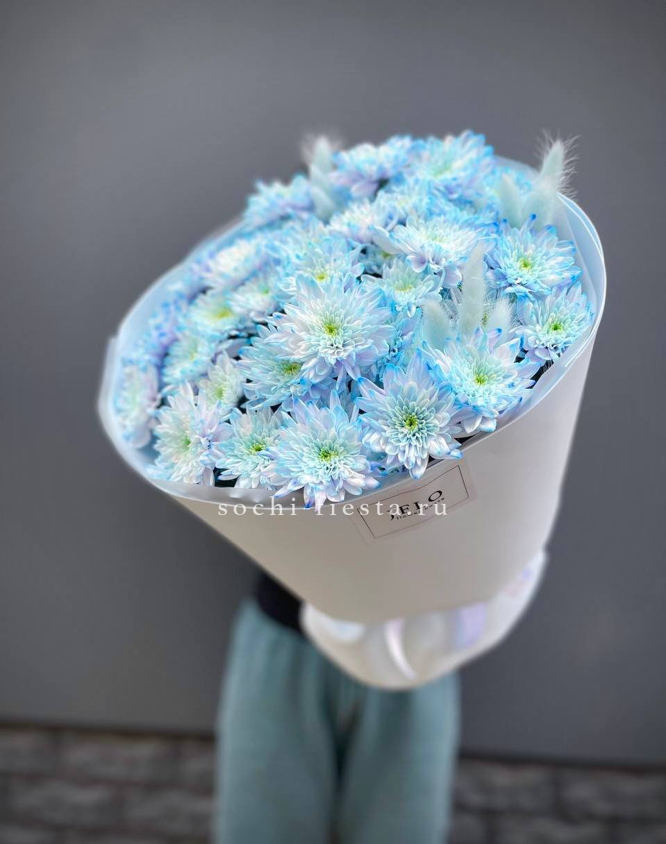 хризантема кустовая - 9 шт., лагурус, пленка,  лента.