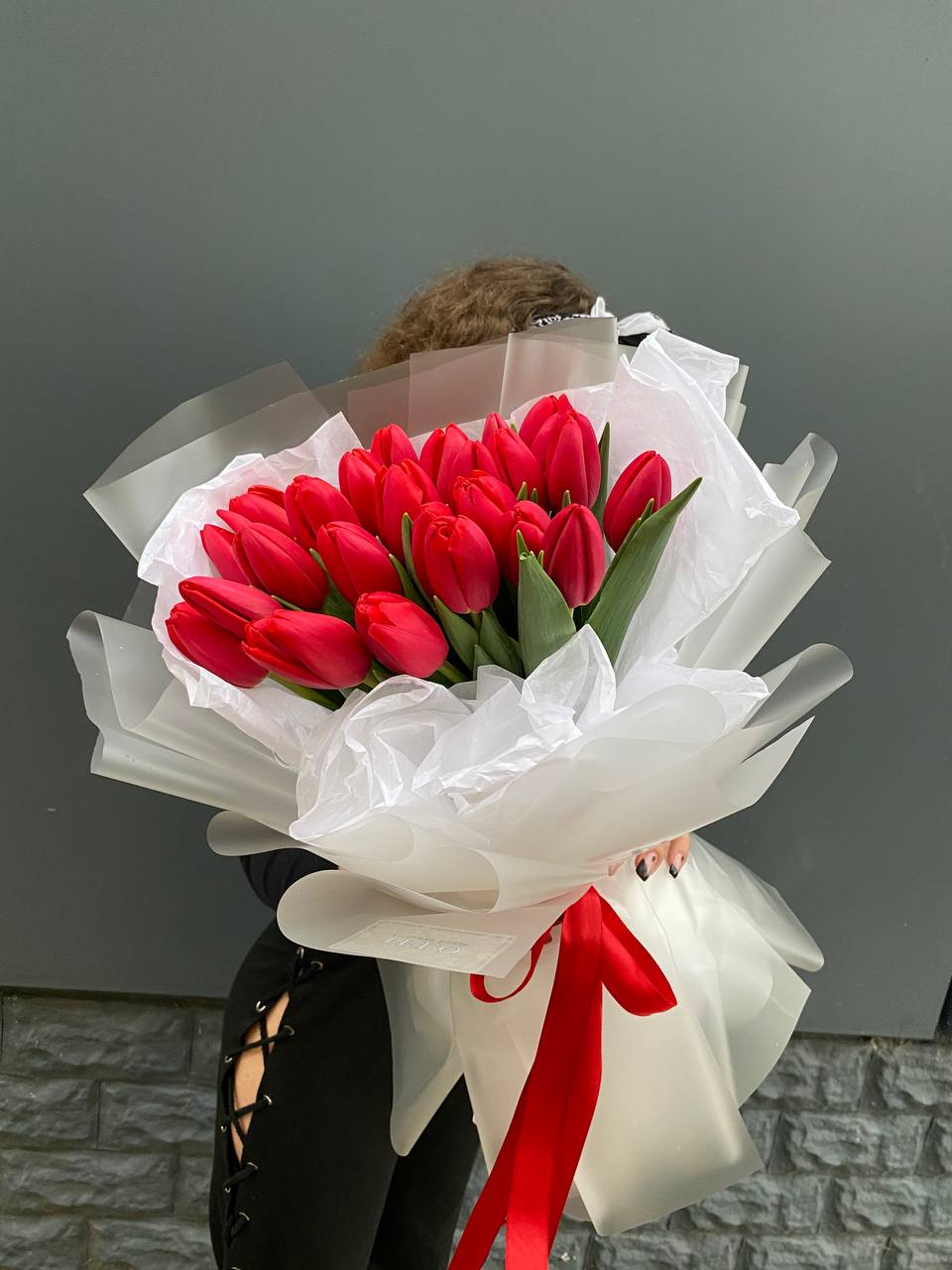 11 тюльпанов, дизайнерская упаковка. Вы можете указать желаемый цвет тюльпанов при оформлении заказа.