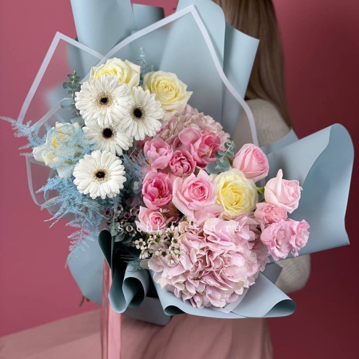- Редкий состав — David Austin, ранункулюс, анемоны, сезонные пионы.