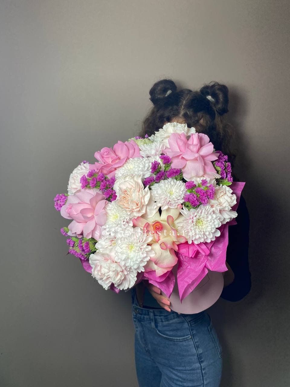 диантус, хризантема, роза, статица, эустома, бокс 16.