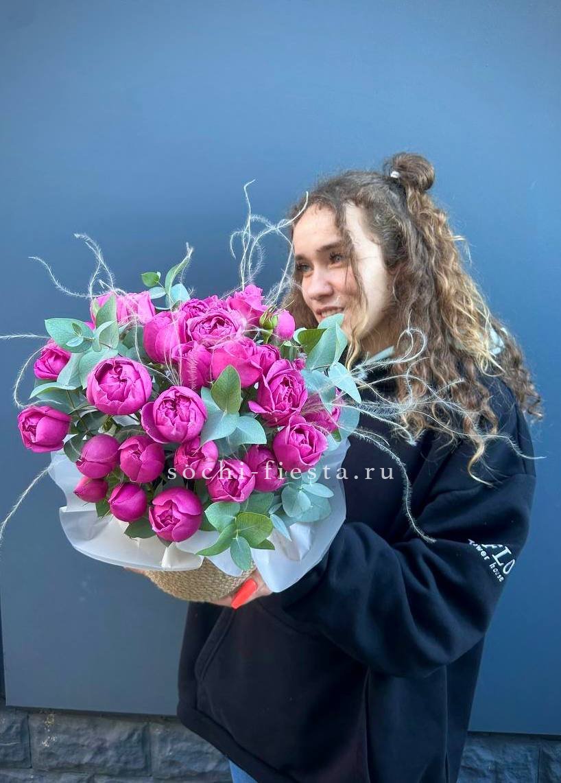 Для заказа товара "Пионовидные розы в джутовом кашпо " с доставкой в Улан-Удэ нажмите в корзину