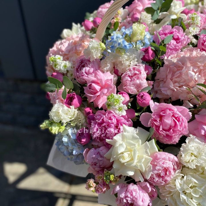 Каждый сезон приносит в Улан-Удэ свой ассортимент корзин. Весной флорист создаёт корзины с тюльпанами и нарциссами — лёгкие, нежные, полные ощущения обновления. В мае-июне приходят пионы — Sarah Bernhardt, Bowl of Cream, Red Charm — главный флористический праздник. Осенью — хризантема в тёплых гаммах с декоративными ягодами и ветвями. Зимой — хвойные аранжировки с амариллисом для праздничной атмосферы.