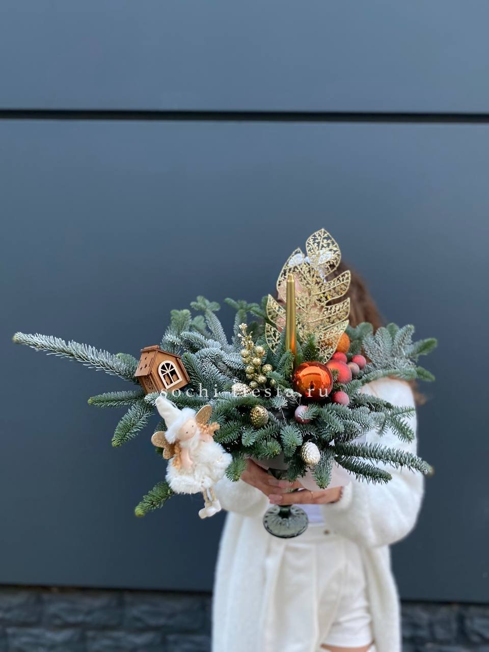 нобилис, бокал, оазис, свечи, новогодние игрушки, декор ВНИМАНИЕ! Готовая композиция (декор) может иметь незначительные внешние отличия от примера на фотографии.