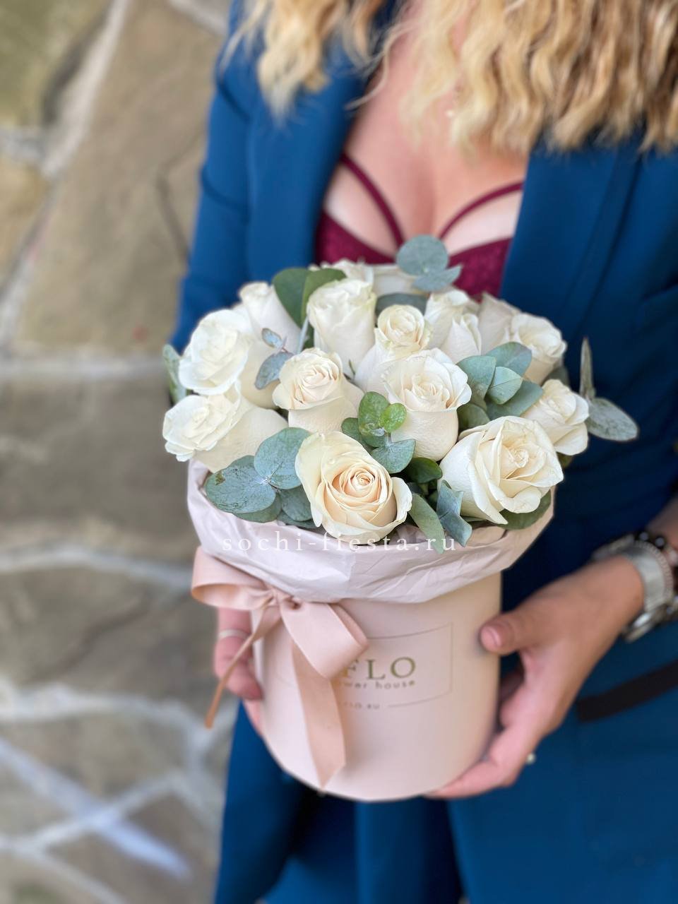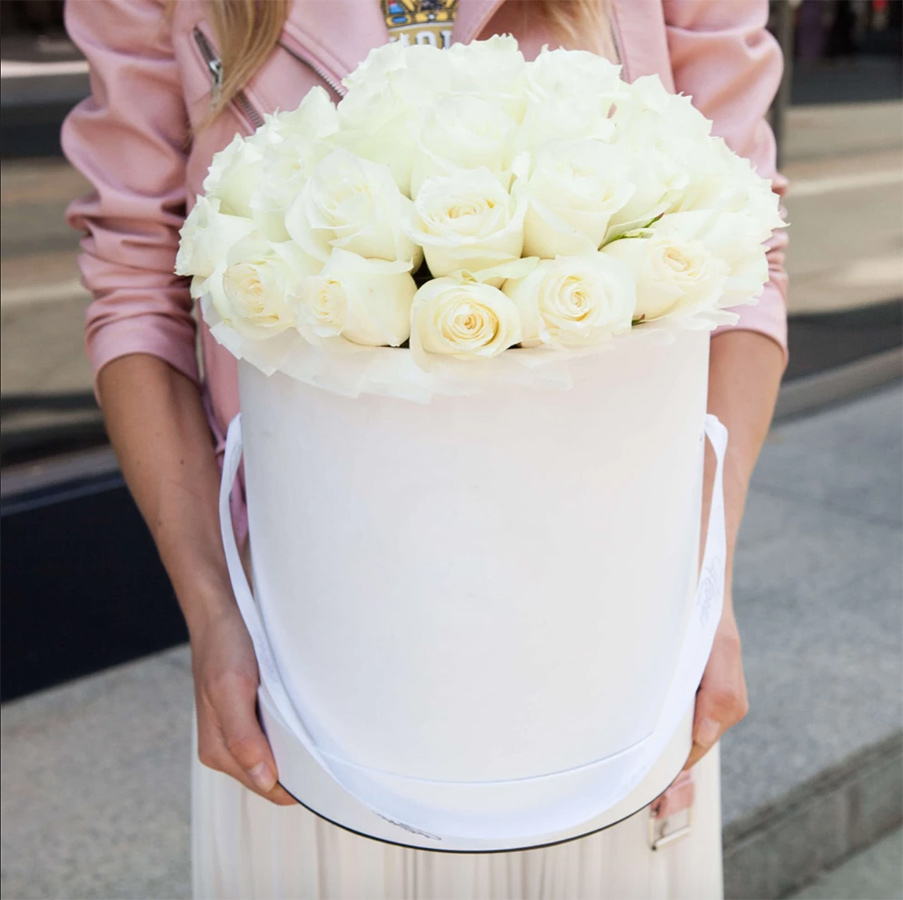 Для заказа товара "Цилиндр из белых роз" с доставкой в Улан-Удэ нажмите в корзину