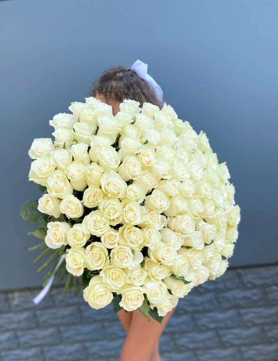 Сто одна голландская роза сортов Фридом или Эксплорер впечатляет длиной стеблей и крупными бутонами. Глубокий винный оттенок и безупречная геометрия каждого цветка. Масштаб, который чувствуется.