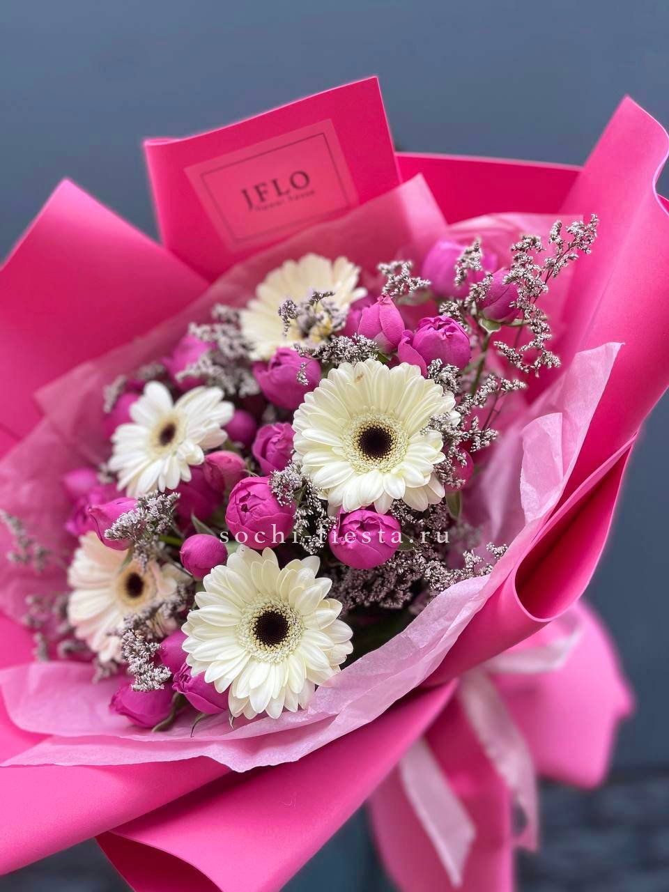 гортензия, кустовые хризантемы, герберы, маттиола, диантусы и лимониум.