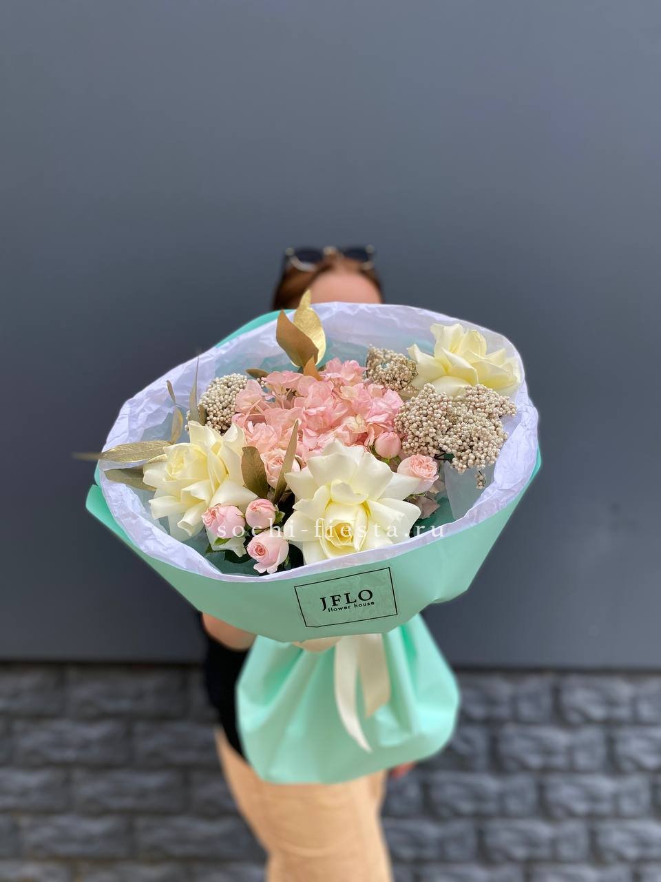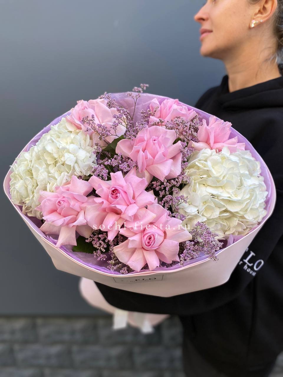 Для заказа товара "Букет с гортензией и белыми французскими розами" с доставкой в Улан-Удэ нажмите в корзину